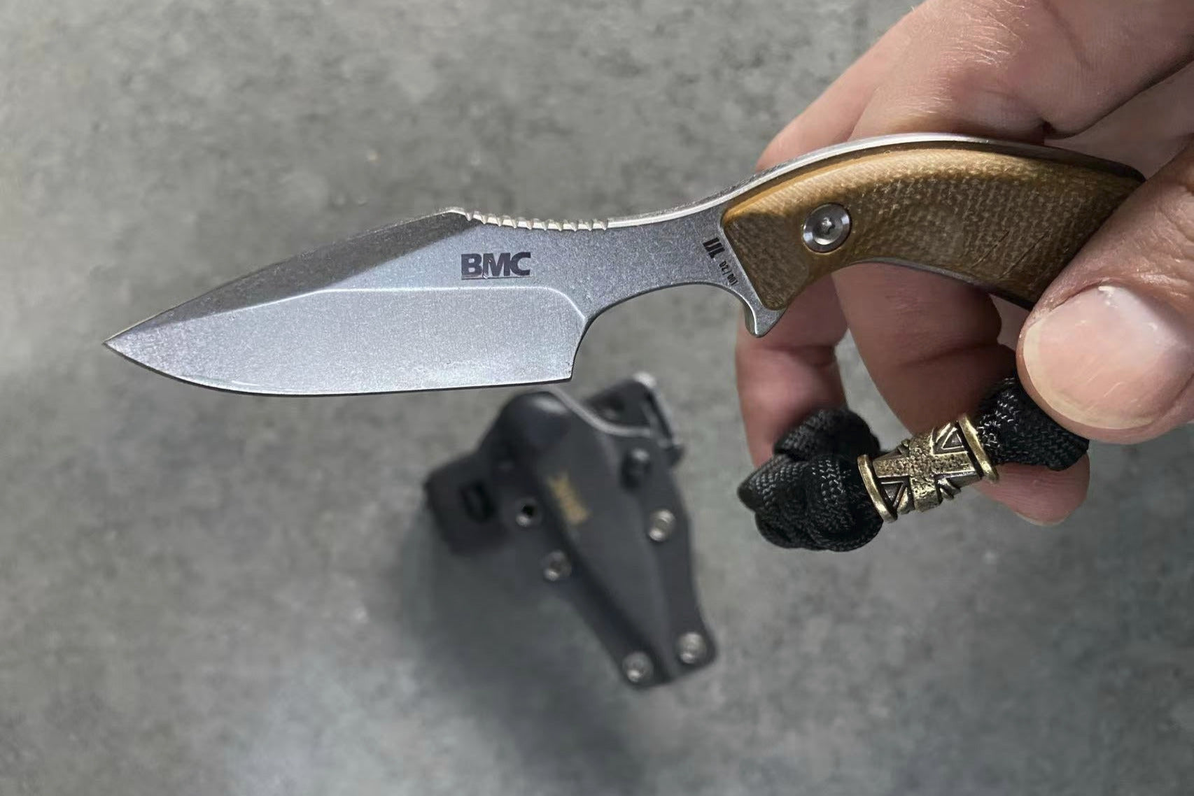 The D2 steel blade comes in either Raw or Black Stonewashed finishes with matching Micarta scales. A rare feature for a diminutive neck knife, but like every in-house BMC designed blade - ergonomics and functionality are of the utmost importance.